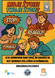 Komenda Miejska Policji w Poznaniu z wspólnie z Powiatowym Centrum Pomocy Rodzinie w Poznaniu realizuje projekt profilaktyczny pn. „Moje życie! Twoje życie?”, który został objęty honorowym patronatem Starosty Poznańskiego. Zachęcamy do wzięcia udziału w organizowanym z tej okazji konkursie!